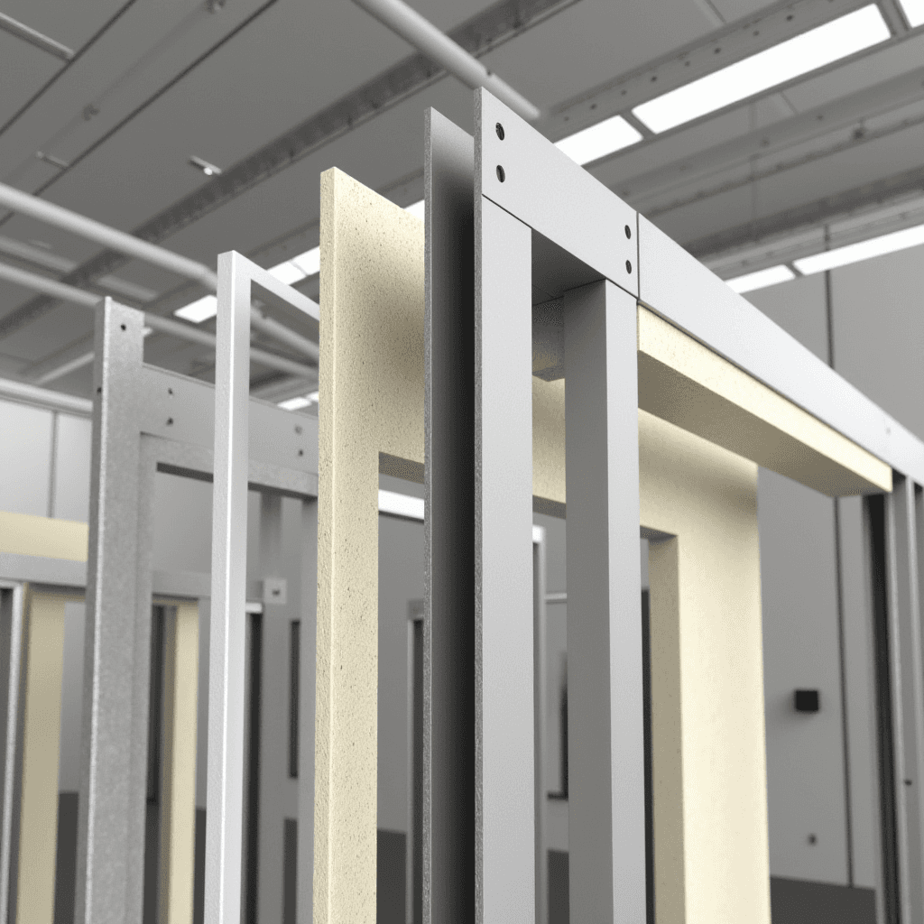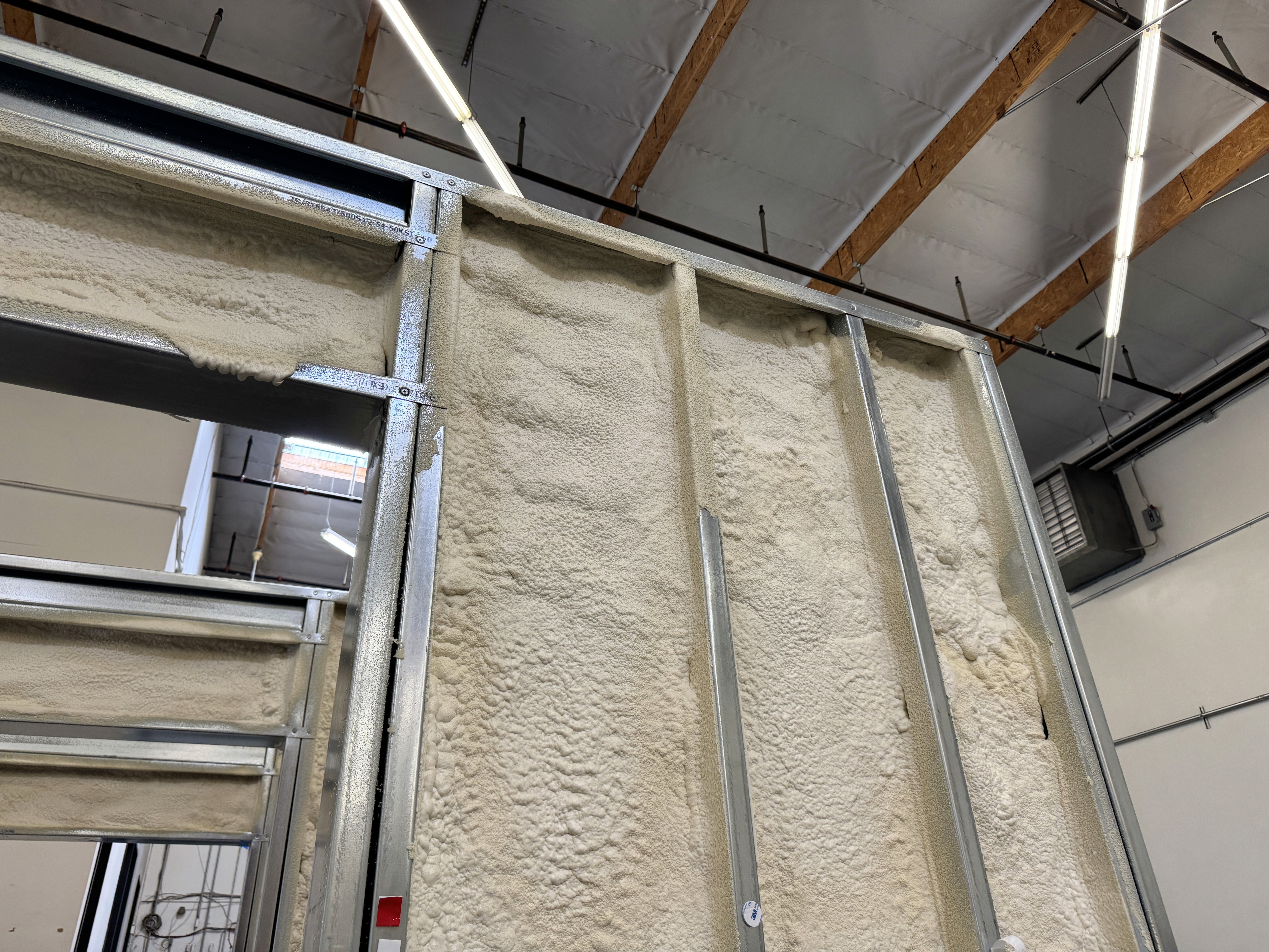 Each panel contains all of the external and internal elements needed for a finished, completed Closed Wall: steel framing, exterior cladding, foam insulation, all mechanical, electrical and plumbing (MEP), windows and interior solid surface cladding.